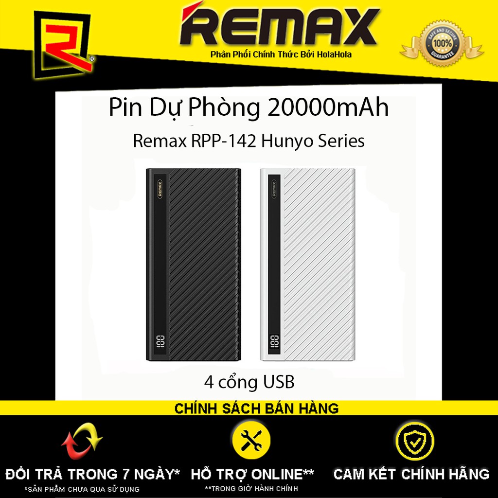🏭 Tên Sản phẩm: Pin Dự Phòng 20000mah Remax RPP-142 Hunyo Series 4 cổng USB