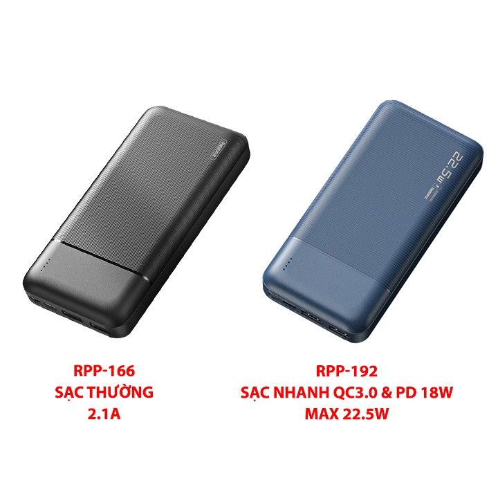 Phiên bản nâng cấp hơn là RPP-192 trang bị công nghệ sạc nhanh QC3.0 và PD 18W max 22.5W.