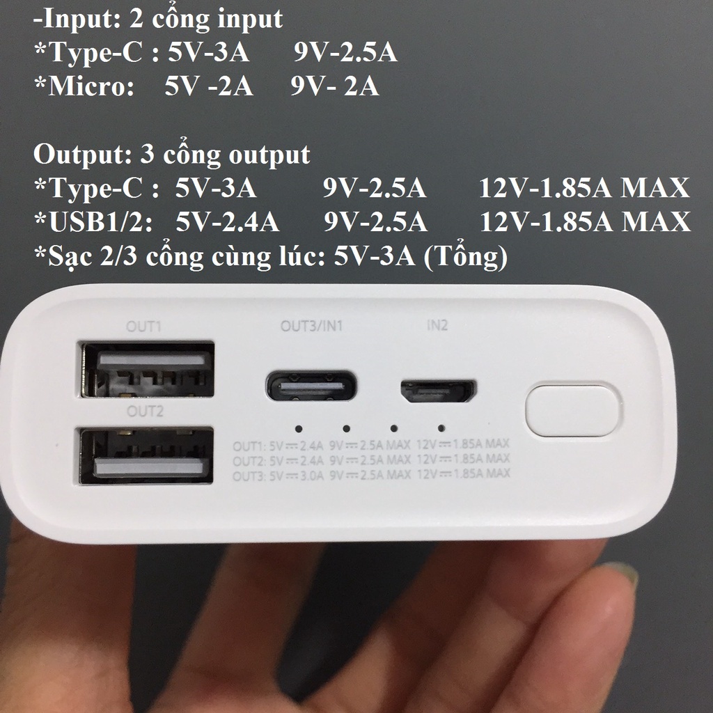 *Sạc 2/3 cổng cùng lúc: 5V-3A (Tổng)