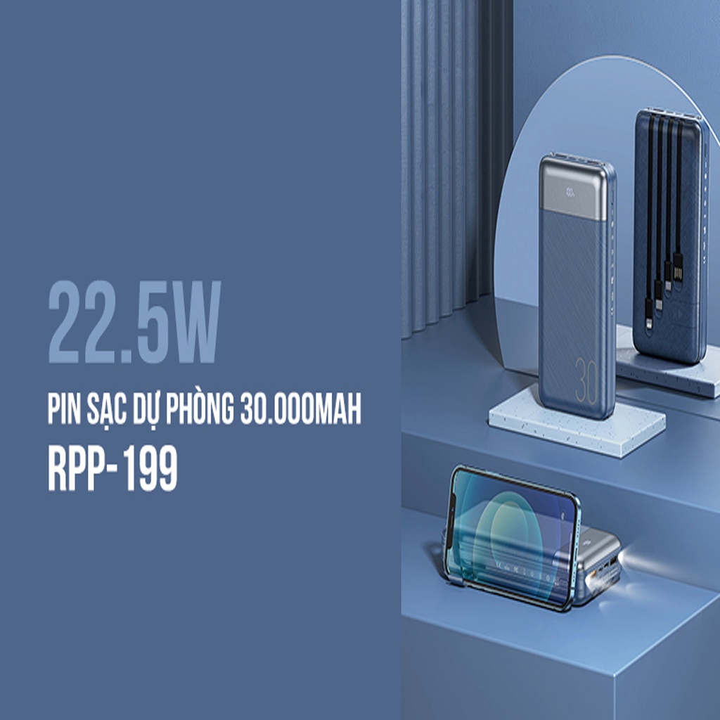 - Tên sản phẩm: Pin sạc dự phòng 30000mAh 22.5W Remax RPP-199