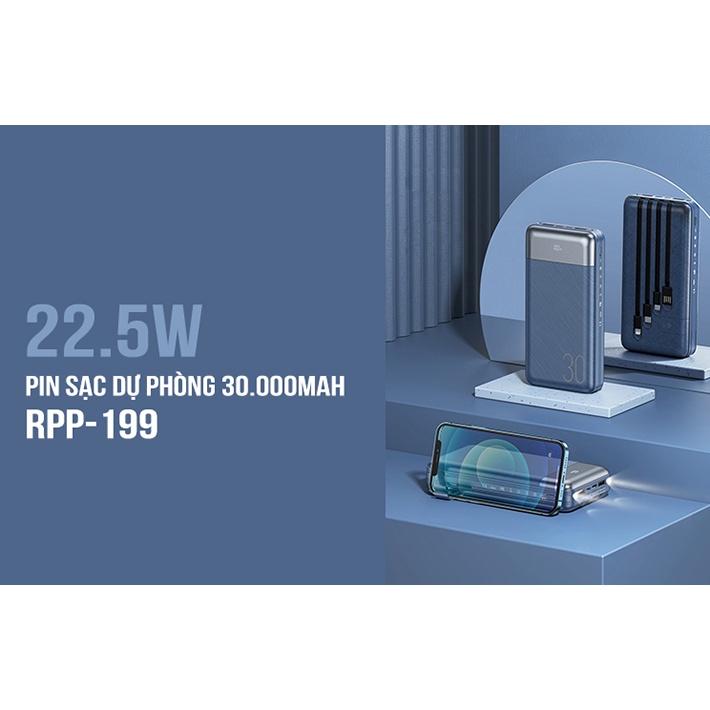 Tên sản phẩm: Pin sạc dự phòng 30000mAh 22.5W Remax RPP-199