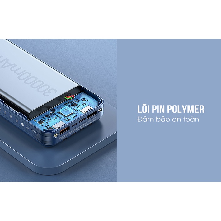 Pin sạc dự phòng 30000mAh Remax RPP-199 được trang bị 4 dây cáp đi kèm cùng 3 cổng ra với công suất tối đa 22.5W, cho phép sạc nhiều thiết bị cùng lúc.THÔNG SỐ KỸ THUẬT: