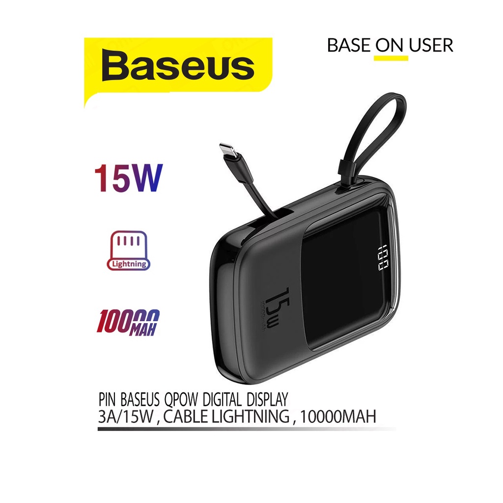 Điện Thoại & Phụ Kiện > Phụ kiện > Sạc dự phòng & Pin > Sạc dự phòng || Pin dự phòng 3A/15W Baseus Qpow Digital kèm cáp Lightning dung lượng 10000mAh tích hợp LCD báo pinCòn hàng