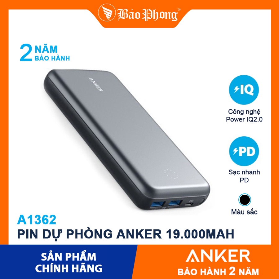 Điện Thoại & Phụ Kiện > Phụ kiện > Sạc dự phòng & Pin > Sạc dự phòng || Pin dự phòng ANKER A1362 PowerCore+ PD 19000 mAh- BH 18 thángCòn hàng