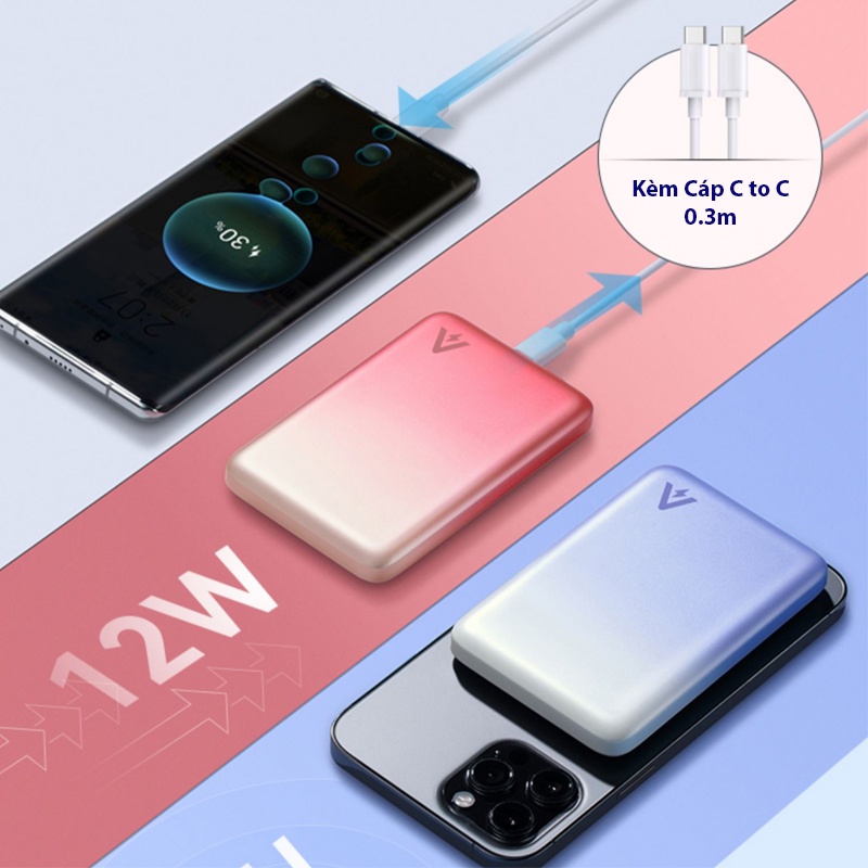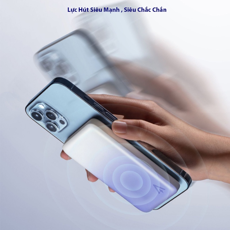 - Pin dự phòng dung lượng 5000mAh hỗ trợ sac không dây Magsafe từ tính cho Iphone 12 13 Seri ngoài ra vẫn sạc không dây cho Iphone 8 tới 11 Pro Max