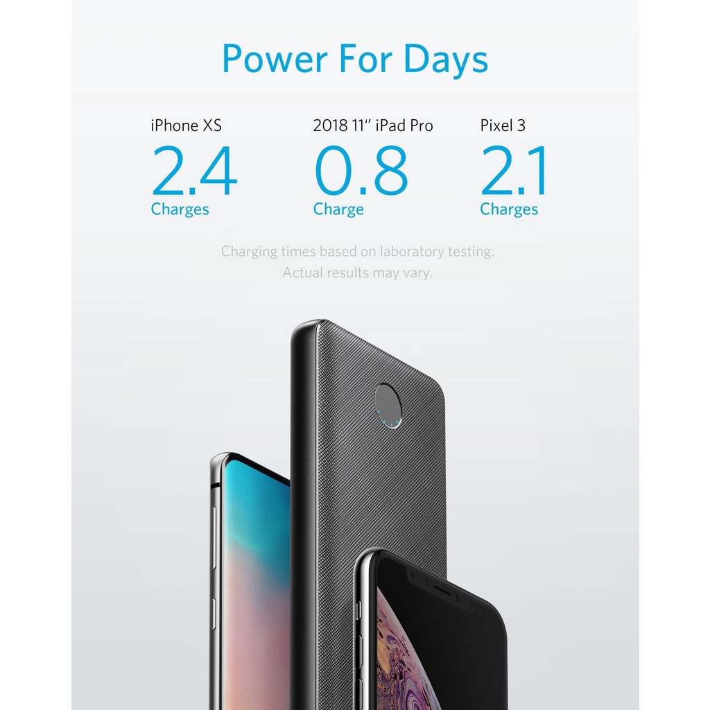Một trong những bộ sạc di động 10000mAh hỗ trợ sạc nhanh Power Delivery (PD) mỏng và nhẹ hàng đầu, với dung lượng đủ để cung cấp hơn 2 lần sạc cho iPhone Xs hoặc Pixel 3, và 80% pin cho iPad Pro 11inch 2018.