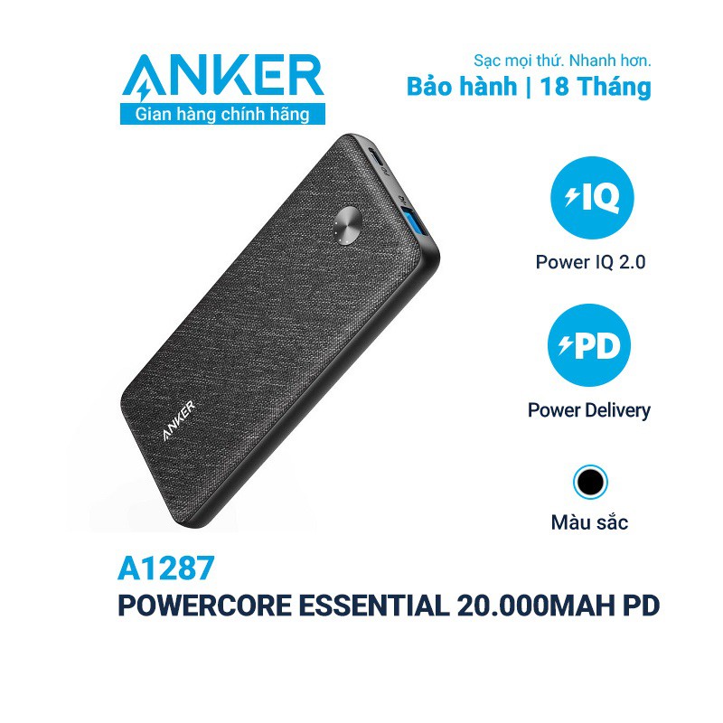 Điện Thoại & Phụ Kiện > Pin sạc dự phòng > 10000 - 20000mAh || Pin Dự Phòng ANKER PowerCore Essential 20.000mAh Power Delivery - A1287 [Phiên bản vải fabric]Còn hàng