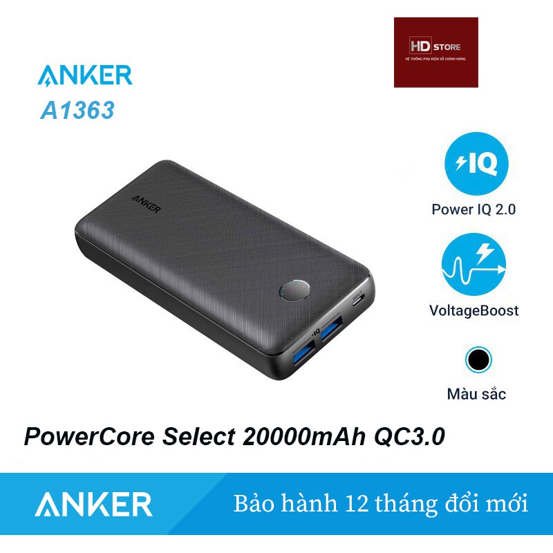 Điện Thoại & Phụ Kiện > Phụ kiện > Sạc dự phòng & Pin > Sạc dự phòng || Pin dự phòng Anker PowerCore Select 20000mAh IQ Hỗ trợ Quick Charge 3.0 - Mã A1363Còn hàng