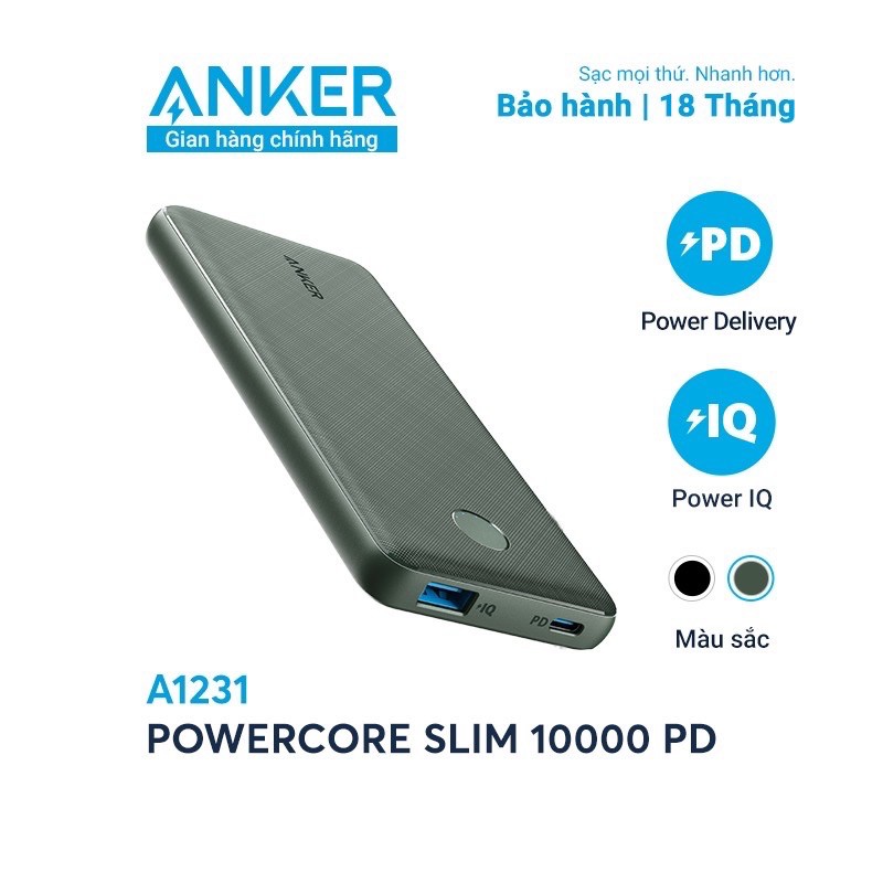 Điện Thoại & Phụ Kiện > Phụ kiện > Sạc dự phòng & Pin > Sạc dự phòng || [Mã 263ELHA100K0 hoàn 7% đơn 500K] Pin dự phòng ANKER PowerCore Slim 10000mAh PD - A1231Còn hàng