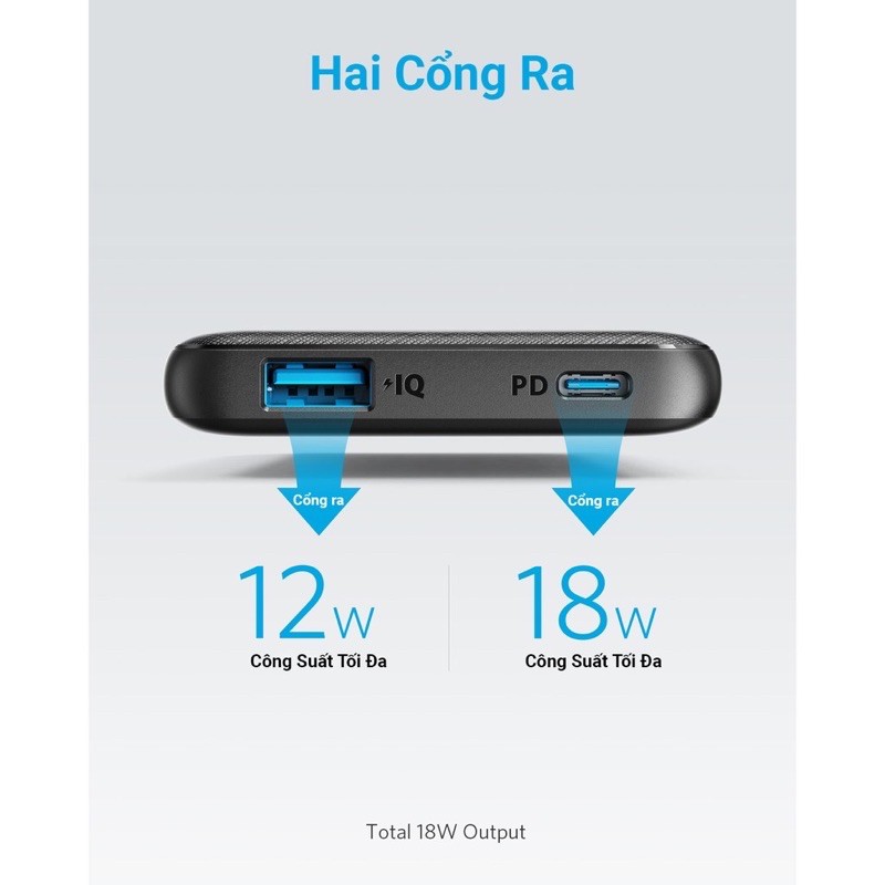 Sạc nhanh 18W qua cổng USB-C hỗ trợ PD, sạc tối ưu 12W bằng cổng USB-A với công nghệ PowerIQ độc quyền, và chế độ sạc nhỏ giọt Trickle-Charging cho các thiết bị cần dòng sạc thấp. PowerCore Slim 10000 PD hỗ trợ sạc đồng thời 2 cổng USB-C và USB-A với tốc độ tối đa 5V/3A.