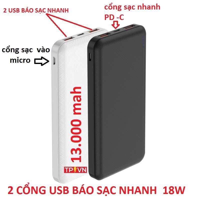 - Dung lượng thực 13.000mAh với công nghệ lõi pin Polymer mới nhất