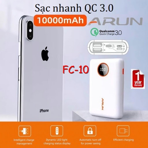 Pin dự phòng Arun 10000mah FC10 có LCDTHÔNG TIN CHI TIẾT