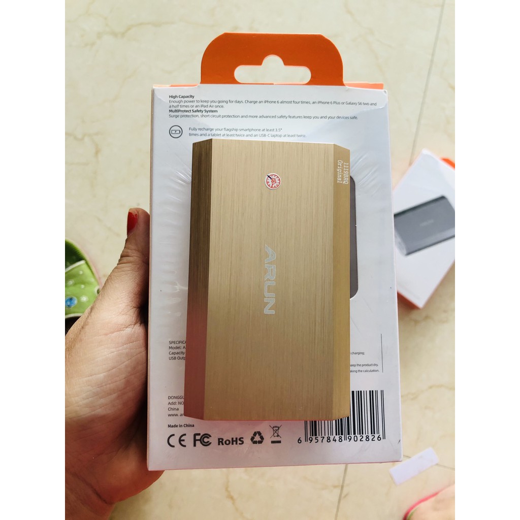 PIN DỰ PHÒNG ARUN 10.000MAH- VỎ NHÔMHÀNG CHÍNH HÃNG