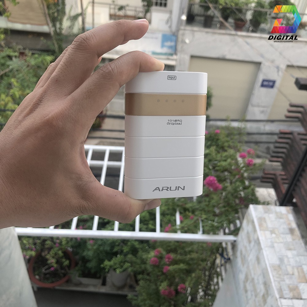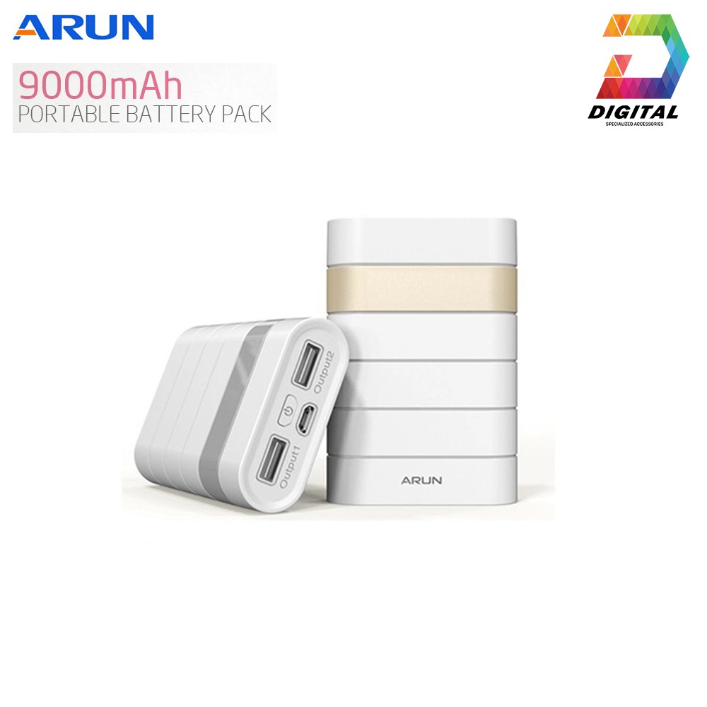 - Hầu hết khi mua điện thoại thì mọi người đều quan tâm đặc biệt đến dung lượng pin, vấn đề đó không còn đáng lo ngại với pin sạc dự phòng Arun 9000 mAh. Sản phẩm giúp bạn sạc điện thoại mọi lúc, mọi nơi, nhờ khả năng di động tốt, gọn nhẹ trong túi quần.