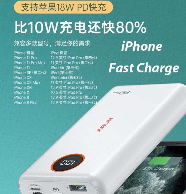 - Dung lượng 20.000 mAh (Sạc được hơn 8 lần iPhone 8)