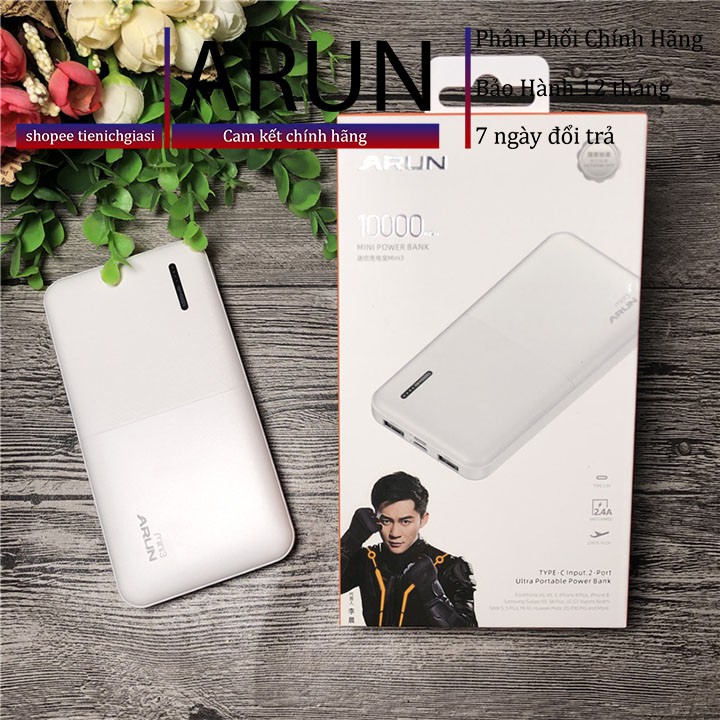 Pin dự phòng Arun mini 3 10000mah Cổng TypeC – Sạc dự phòng siêu mỏng 2 cổng Type C Micro USB youngcityshop 30.000