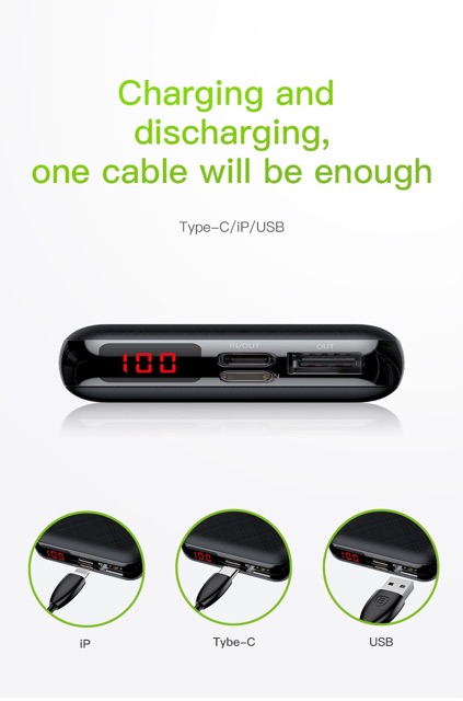 - Pin sạc dự phòng có dung lượng 10,000mAh nhưng với kích thước siêu nhỏ gọn (chỉ 92x61x22mm), có thể nằm gọn trong lòng bàn tay của bạn .