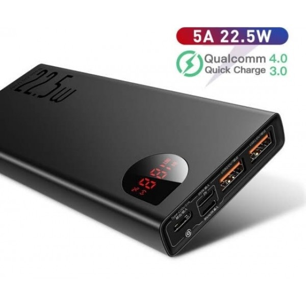 – Pin sạc dự phòng Baseus Adaman có dung lượng 20,000, hỗ trợ hầu hết các chuẩn sạc nhanh hiện nay, tương thích với hầu hết các thiết bị số hiện nay từ Macbook/ Laptop cho đến Smartphone/ Tablet … Dung lượng lớn, công suất, hiệu suất sử dụng cao (lên đến 22.5W) có 3 port (2 USB + 1 Type C). Cả 3 Port này đều hỗ trợ sạc nhanh (QC3.0 và PD3.0) , có thể dùng sạc pin cho cả 3 thiết bị cùng lúc . Giúp bạn sử dụng thoải mái hơn và quên đi nổi lo hết pin khi đi công tác, du lịch, giả ngoại … Giúp cho mọi thiết bị của bạn luôn trong tình trạng sẳn sàng sử dụng .– Ngỏ vào : được trang bị 3 cổng sạc ngỏ vào gồm Lightning, Micro và Type C . Trong đó cổng Type C hỗ trợ sạc nhanh đồng thời cả in và out (Bi-directional quick charging). Việc trang bị cả 3 cổng sạc ngỏ vào cho phép bạn bạn có thể sạc cho pin bằng chính cáp của điện thoại mà không cần trang bị thêm cáp sạc riêng.