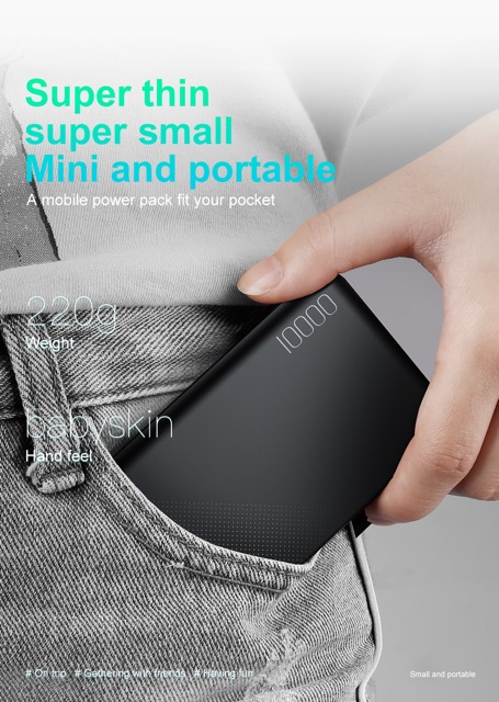 Điện Thoại & Phụ Kiện > Phụ kiện > Sạc dự phòng & Pin > Sạc dự phòng || Pin Dự Phòng Baseus Baby skin 10000mAh - Power Bank Baseus 10000mAh.Còn hàng