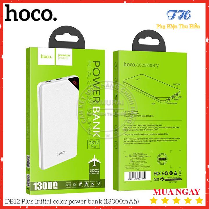 👉 Nếu bạn đang cần mua pin dự phòng với mức dung lượng pin cao, giá cả phù hợp thì Pin dự phòng HOCO DB12 Plus 13000mAh là sự lựa chọn không thể bỏ qua. Pin dự phòng HOCO DB12 Plus 13000mAh sở hữu thiết bị nhỏ gọn, đẹp với nhiều màu sắc phổ biến cho người dùng lựa chọn bao gồm: màu hồng, tím, đen, trắng và xanh nước biển.