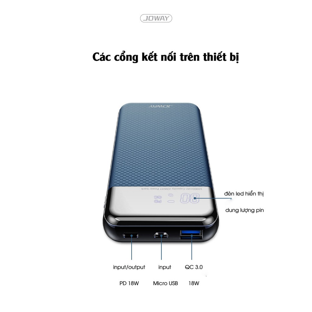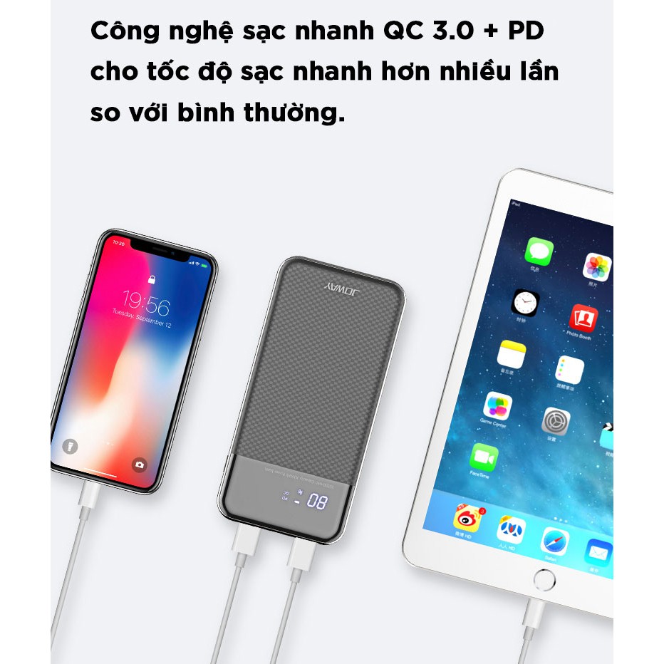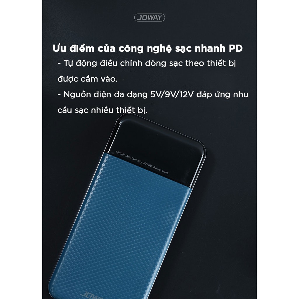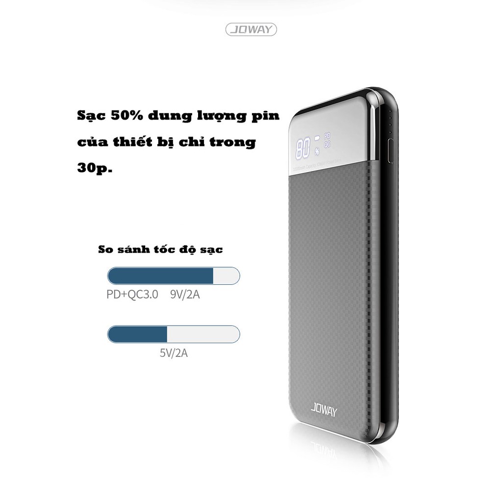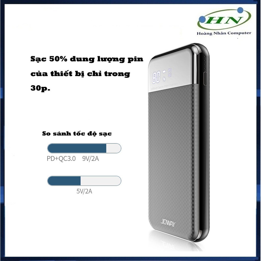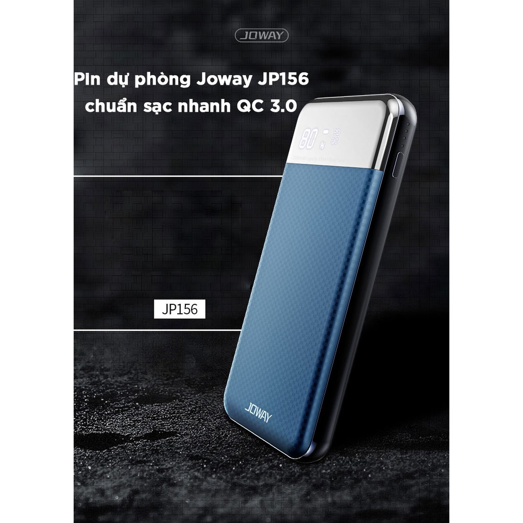 Giới thiệu [Mã SKAMSALE03 giảm 10% đơn 200k] Pin Dự Phòng Có Sạc Nhanh QC 3.0 Rẻ Số 1, Vỏ Nhựa Cực Nhẹ Joway JP156 Màu Đen