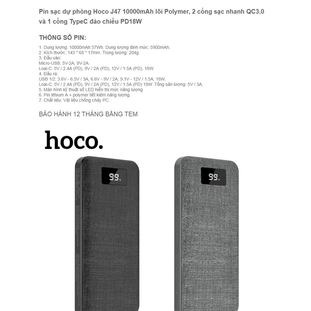 Thương hiệu: Hoco | Xem thêm các sản phẩm Pin sạc dự phòng di động của HocoMô tả ngắn