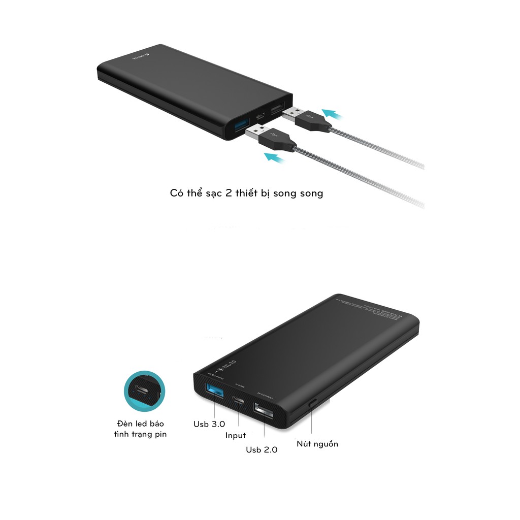 Dung lượng “khủng” lên đến 10000 mAh và hỗ trợ sạc nhanh Quick Charge 3.0