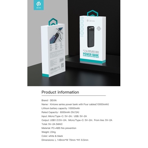 Giới thiệu Pin dự phòng Devia Kintone kèm cáp 10.000mAh