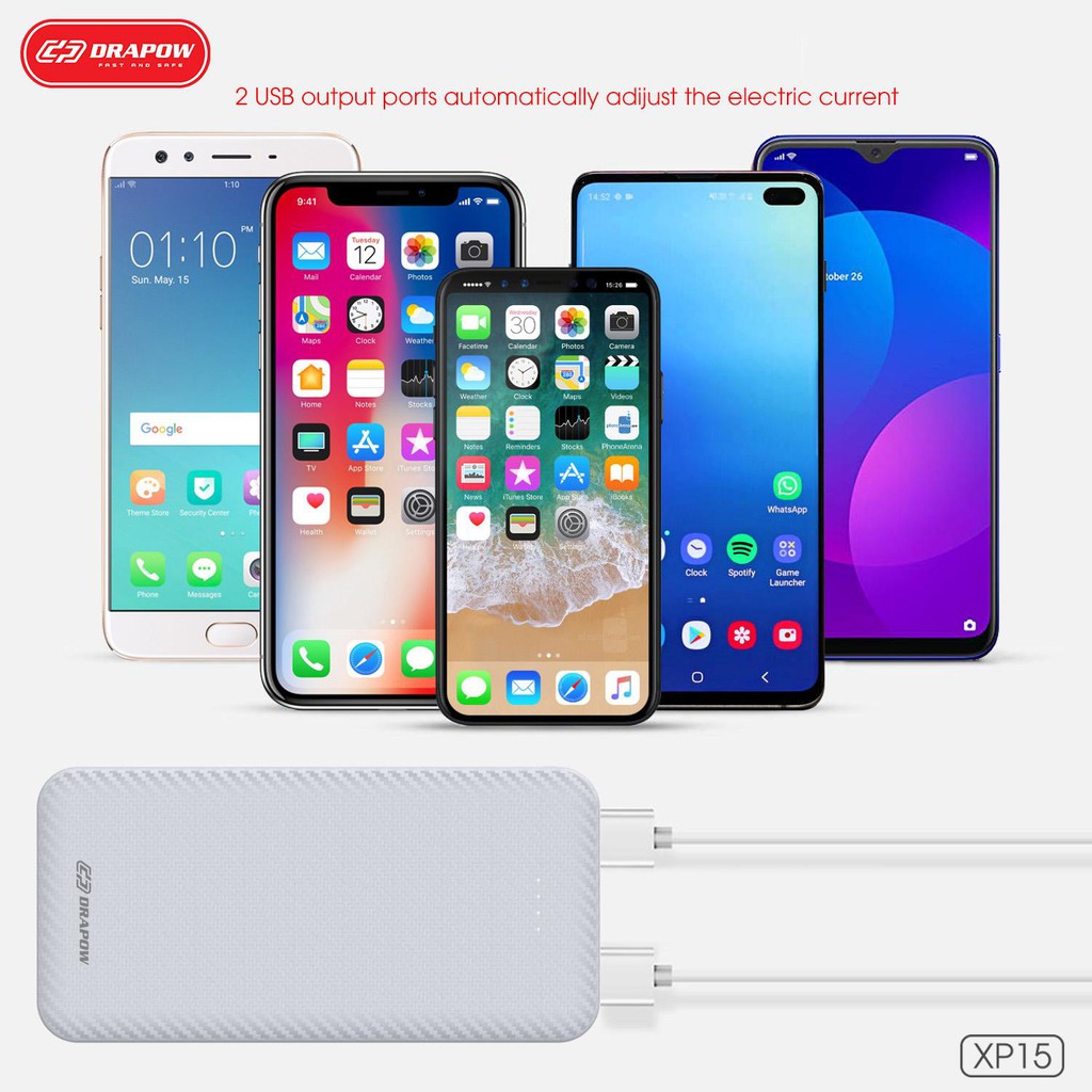 Điện Thoại & Phụ Kiện > Pin sạc dự phòng > 10000 - 20000mAh || Pin dự phòng DRAPOW XP15 10.000mah Vỏ Cacbon chống trầy - cổng sạc Type CCòn hàng