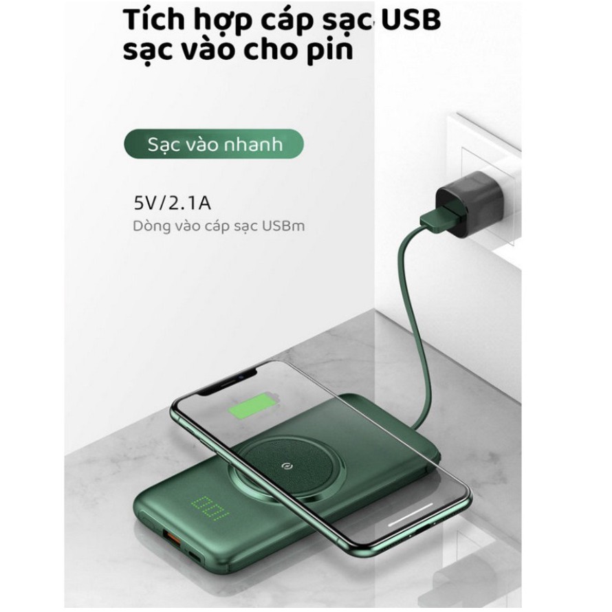 - Công suất lớn: Output dây: 5V/2.1A Output không dây: 5V/1A. Input dây: 5V/2A