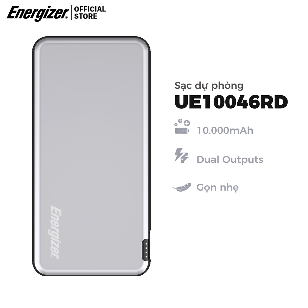 Pin dự phòng Energizer Chiến Binh II 10000mAh UE10046 - thiết kế gọn nhẹ, tích hợp 2 cổng output tiện lợi