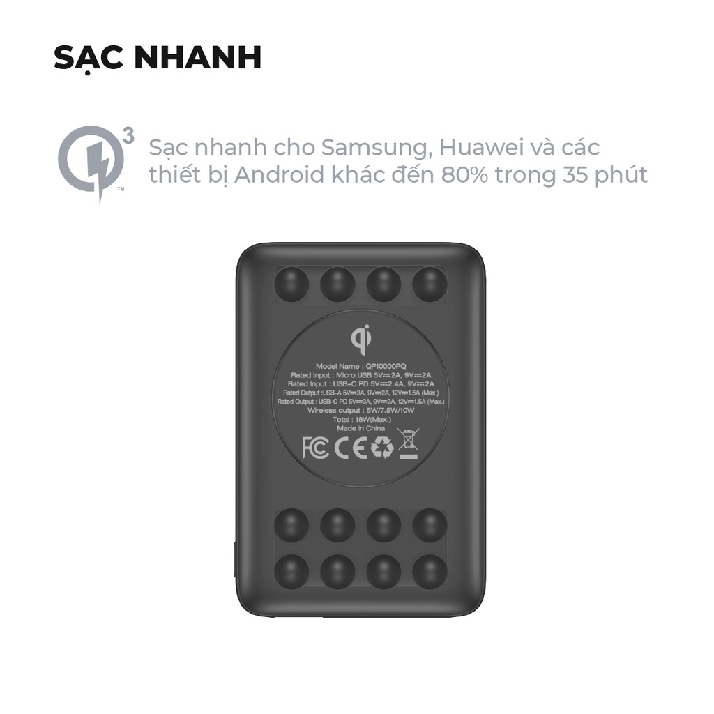 ✔ Tính năng:Dung lượng 10000mAh có thể sạc cho một smartphone tiêu chuẩn lên đến 3 lần, khoảng 36 giờ