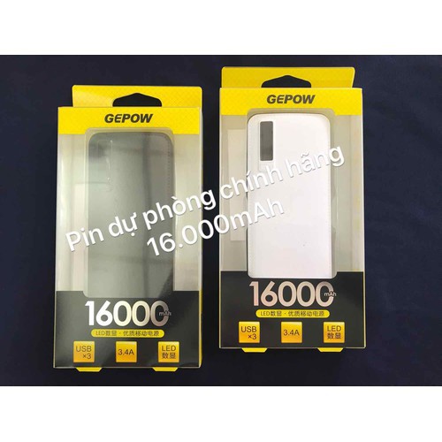 Điện Thoại & Phụ Kiện > Phụ kiện > Sạc dự phòng & Pin > Sạc dự phòng || PIN DỰ PHÒNG GEPOW 16000MAH LED CHÍNH HÃNGCòn hàng