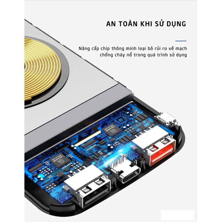 Pin dự phòng hỗ trợ sạc nhanh không dây 10W USAMS 10000mAhPin dự phòng sạc nhanh cho mọi thiết bị