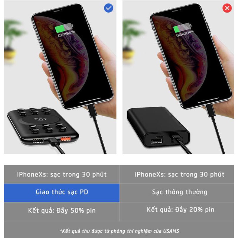 Pin dự phòng hỗ trợ sạc nhanh không dây 10W USAMS 10000mAh - Home and Garden
