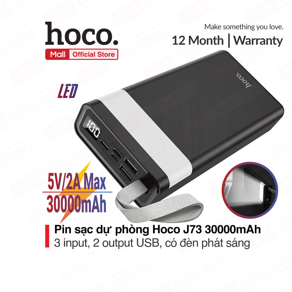 Pin dự phòng Hoco J.73 dung lượng 30000mAh, 2 cổng USB-A output ( 5V/2A Max ), 3 cổng input, tích hợp đèn chiếu sáng