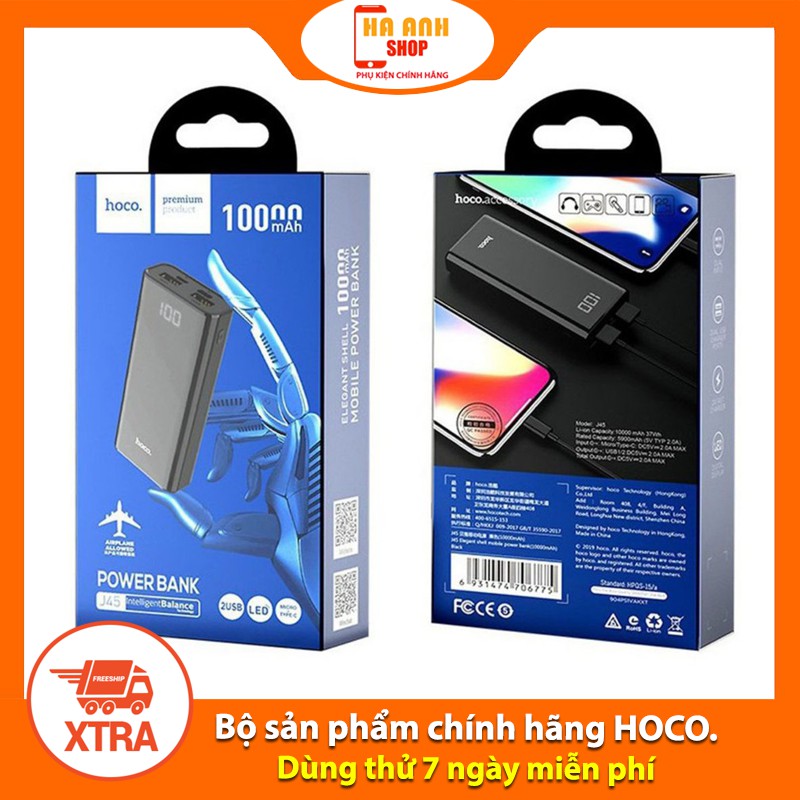 Điện Thoại & Phụ Kiện > Pin sạc dự phòng > 10000 - 20000mAh || Pin dự phòng HOCO J45 dung lượng 10000mAh Elegant Shell(Tặng mã Freeship Extra toàn quốc)Còn hàng
