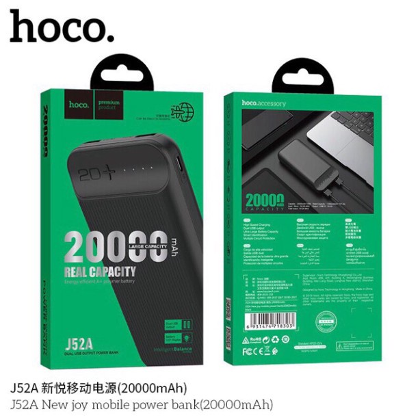 ✔Sạc dự phòng Hoco J52A 20000mAh là dòng sạc dự phòng cao cấp của hãng Hoco danh tiếng: