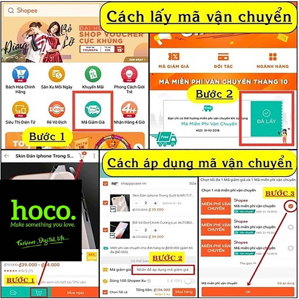 👍 Cách Áp Dụng: Thêm sản phẩm vào giỏ - chọn shopee voucher khả dụng - áp dụng và đặt đơn hàng
