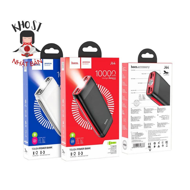 HOCO J64 10000mAhDung lượng thiết kế: 10000mAh 37Wh.