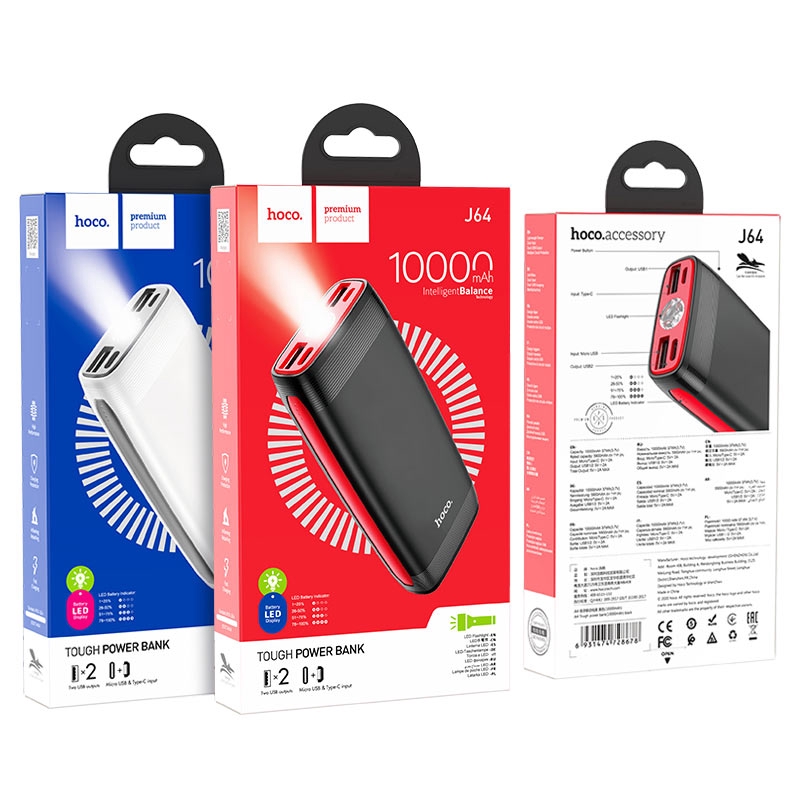 Pin dự phòng HOCO J64 10000mAhDung lượng thiết kế: 10000mAh 37Wh.