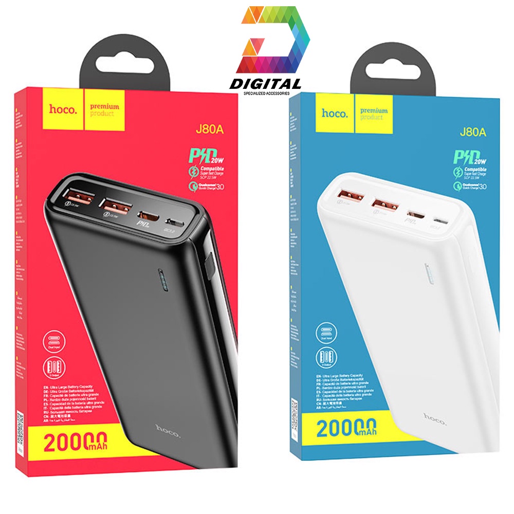 Điện Thoại & Phụ Kiện > Phụ kiện > Sạc dự phòng & Pin > Sạc dự phòng || Pin Dự Phòng Hoco J80A 20000mAh Chính Hãng Hỗ Trợ Sạc Nhanh 22.5WCòn hàng
