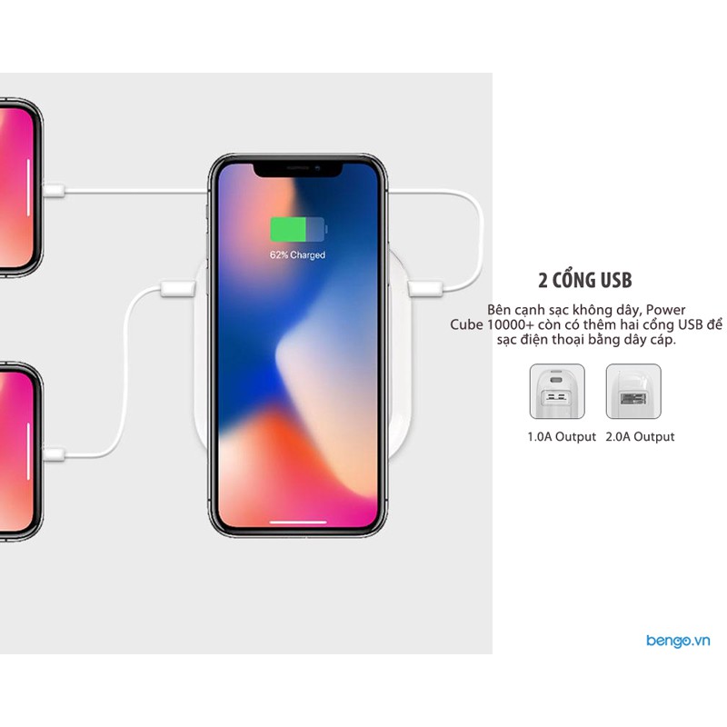 Trong trường hợp bạn quên mang dåy cáp, MIPOW POWER CUBE X 10000+ cho phép bạn đặt thiết bị lên sạc mà không cần dåy (với các thiết bị hỗ trợ tiêu chuẩn sạc không dåy).