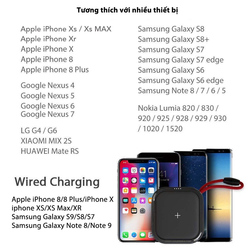 iPhone 8, iPhone 8 Plus, iPhone X, ... và các thiết bị hỗ trợ chuẩn sạc không dåy Qi