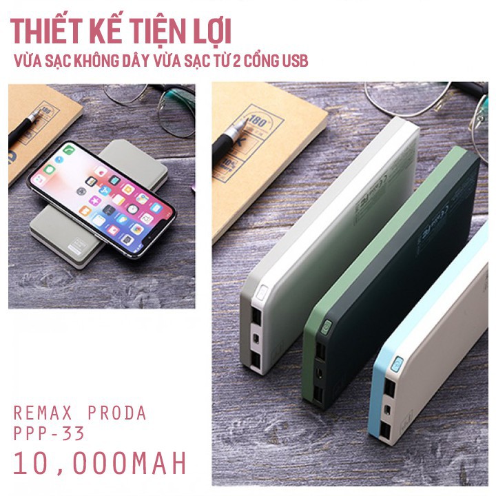 Pin Dự Phòng Kiêm Sạc Không Dây REMAX Proda PPP-33 10000mAh