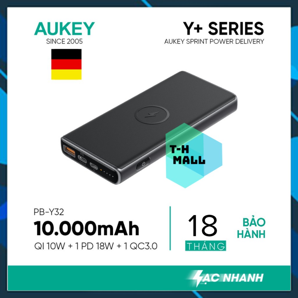 Giới thiệu Pin Dự Phòng Kiêm Sạc Không Dây 10W AUKEY PB-Y32 10.000mAh, Sạc Nhanh PD 18W, QC 3.0