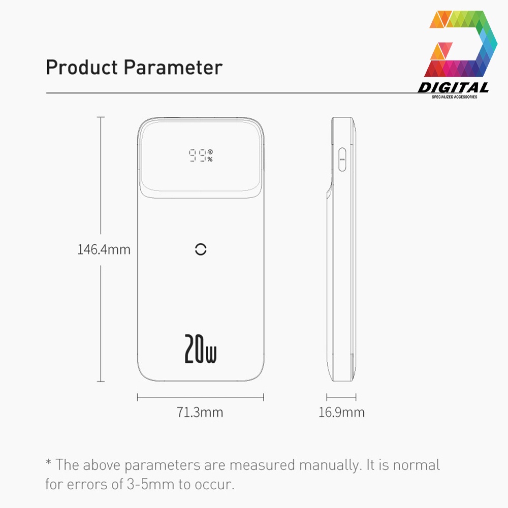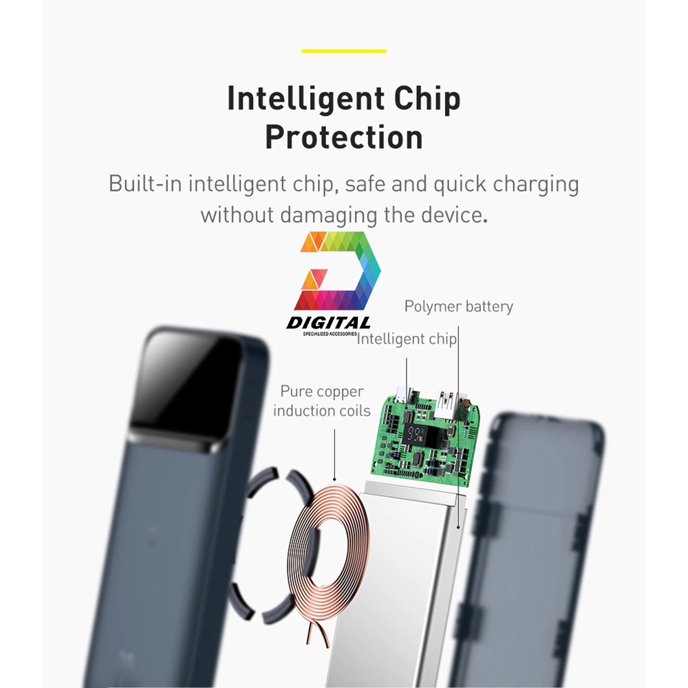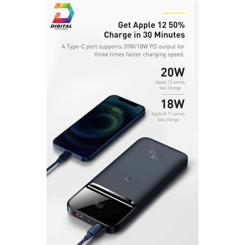 - Pin dự phòng Baseus tại Phụ Kiện Celadon có thiết kế nhỏ gọn kiểu dáng sang trọng bắt mắt và hiện đại dung lượng 10.000mAh với công suất sạc bằng dây là 20W và sạc không dây là 15W.