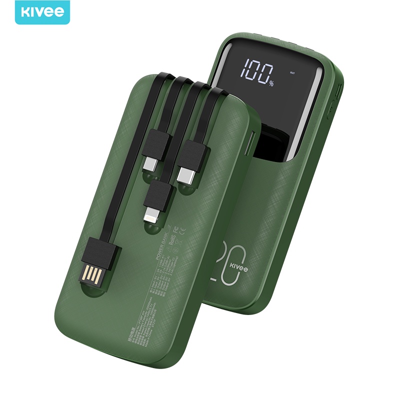 Pin dự phòng KIVEE 10000mAh 20000mAh sạc nhanh 2a đi kèm với ba cáp sạc và màn hình kỹ thuật số LED