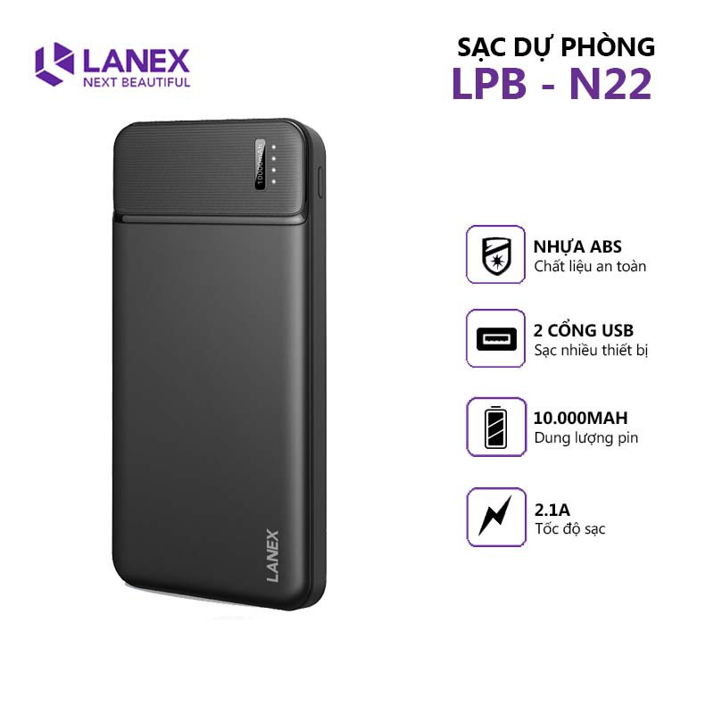 🔥🔥 Giới thiệu [4 trong 1] Pin dự phòng Lanex LPB - N25 10000mah, cổng USB 2.1A, màn hình led.✨ Pin sạc dự phòng LPB - N25 với các ưu điểm như thiết kế sang trọng, dụng lượng pin lớn, sạc nhanh sẽ là một thiết bị rất đáng để bạn sử dụng.