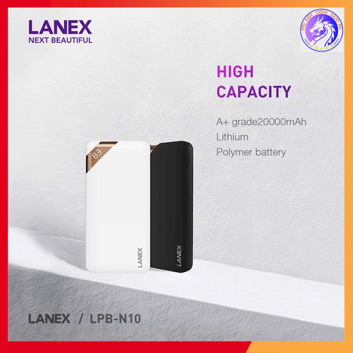 PIN DỰ PHÒNG LITHIUM 2 CỔNG USB 2.1A 20000MAH LANEX LPB-N10 - ĐÈN LED1. Dung lượng: 20000mAh, 74Wh. Dung lượng định mức: 11800mAh